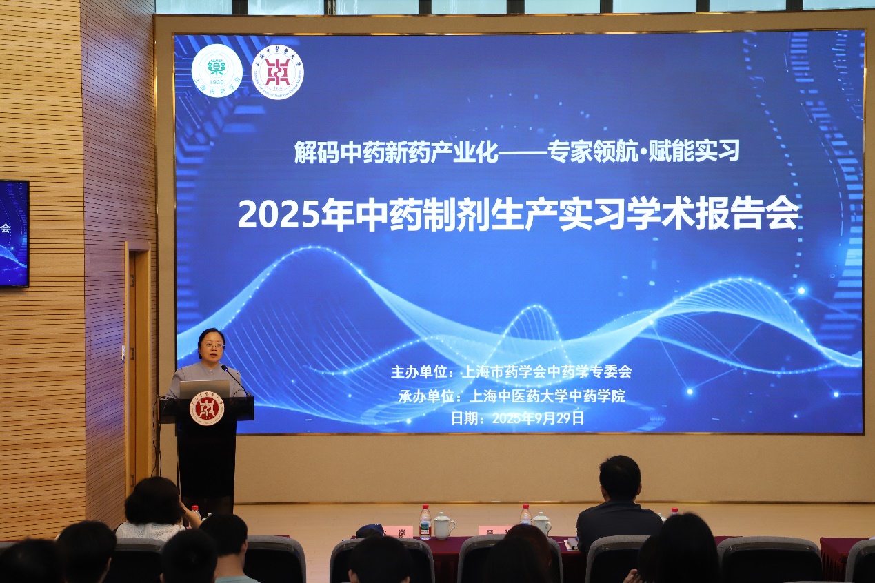 2025年9月29日,由上海市药学会中药学专委会主办、88娱乐城官网 承办的中药制剂生产实习学术报告会在全球合作伙伴中心报告厅举行。本次报告会的主题是:解码中药新药产业化,邀请到了上海药物研究所甘勇研究员和上海雷允上药业有限公司李琦副总经理为中药学专业学生作专题分享。报告会由上海市药学会中药学专委会主任委员、88娱乐城官网 研究生院常务副院长沈岚主持。